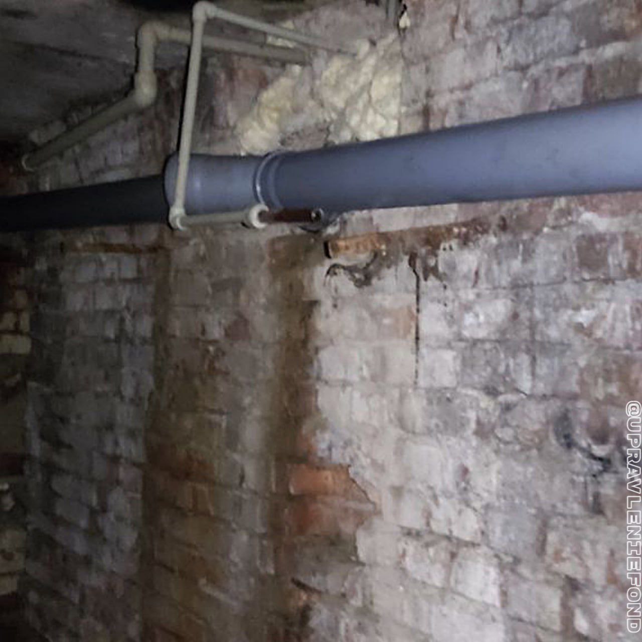 Луганский филиал управляющей компании в подвальном помещении 1-го подъезда на кв. Луганский, 1 обновил трубопровод бытовой канализации.