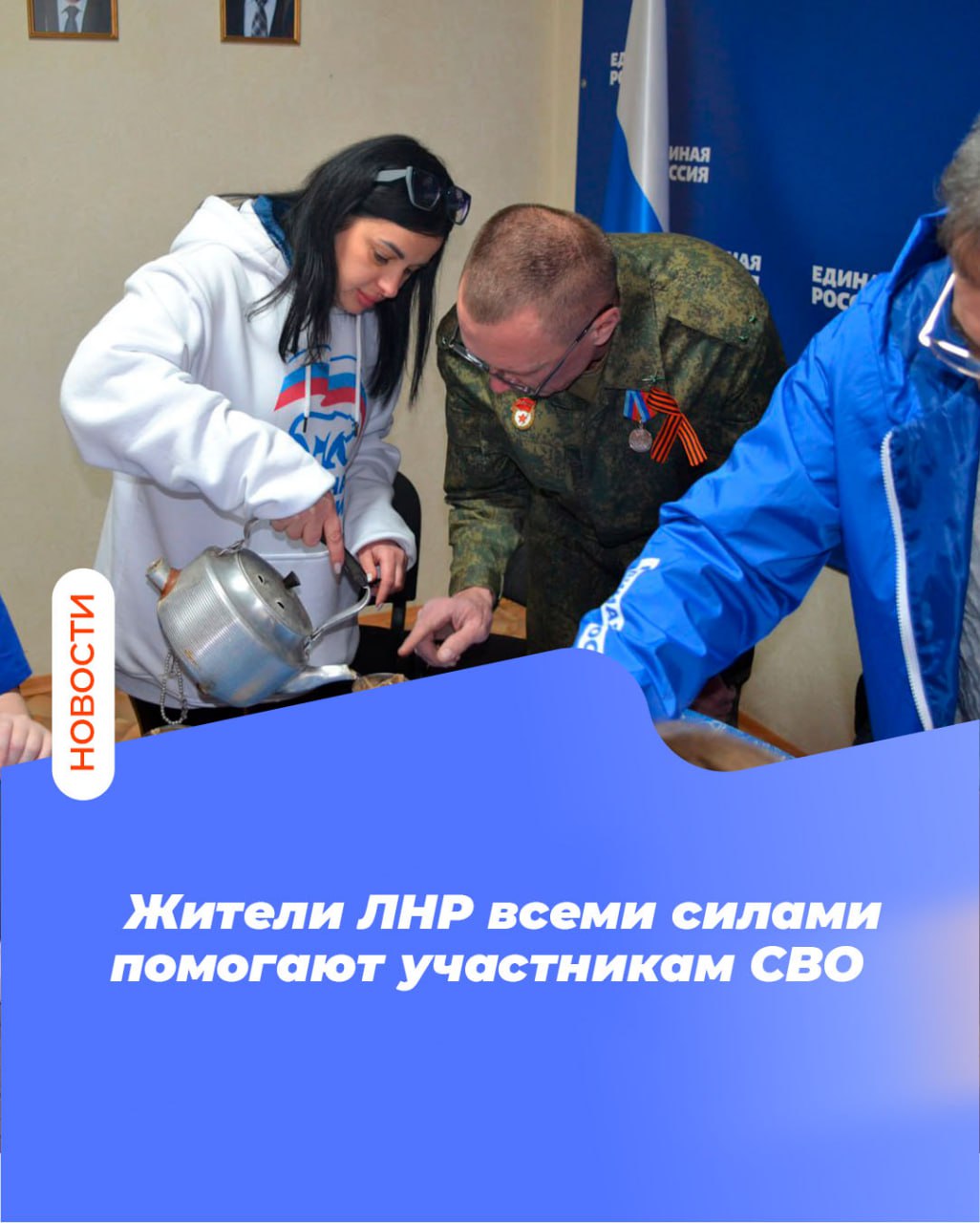В рамках акции «Zа Победу» активисты партии «Единая Россия» по всей ЛНР передают гуманитарную помощь участникам СВО и вместе с неравнодушными жителями изготавливают полезные вещи для фронта.