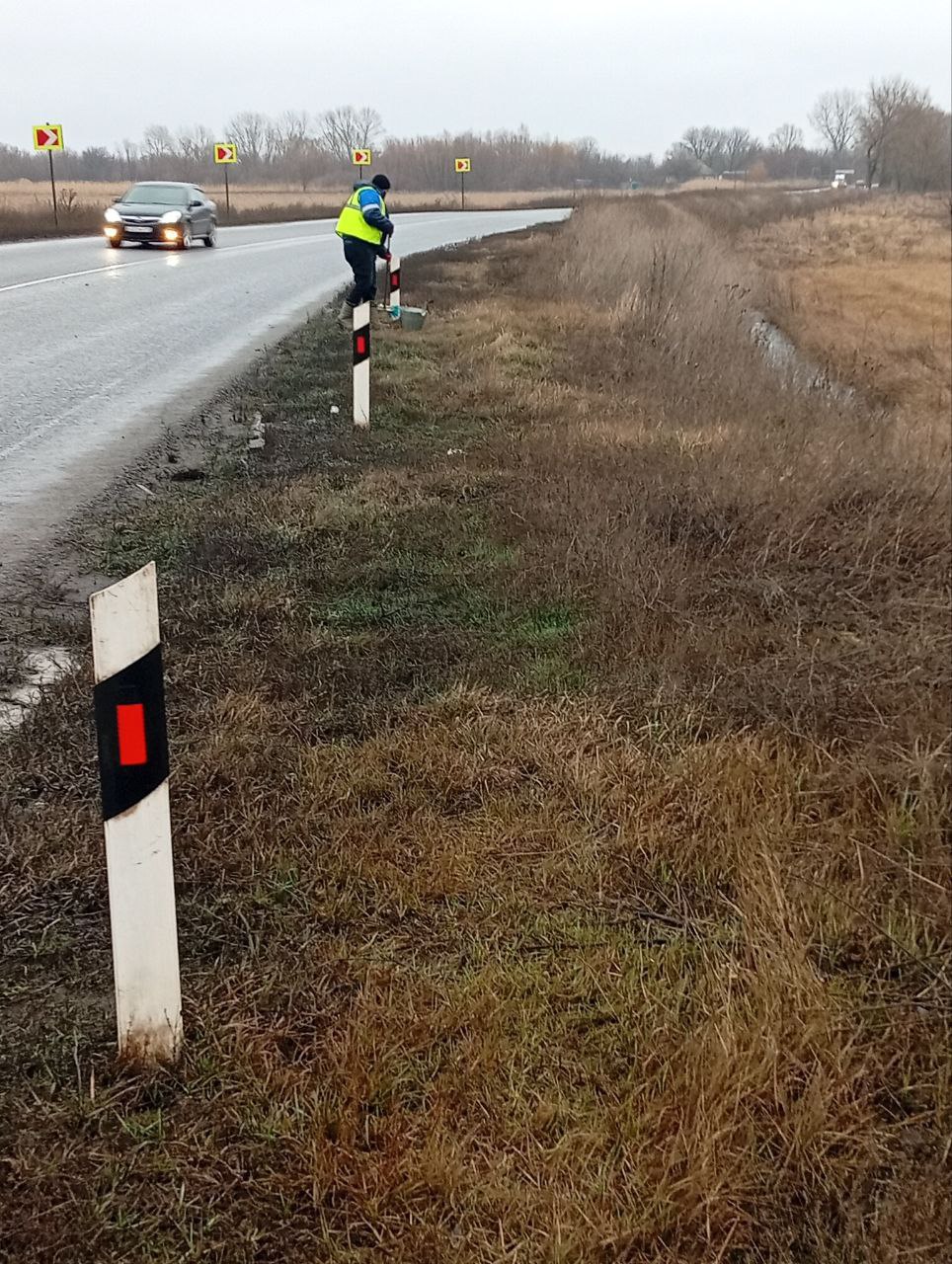В рамках планового обслуживания на автодороге Новопсков – Марковка – Меловое специалисты подрядной организации выполнили ряд мероприятий по очистке дорожных знаков и сигнальных столбиков.