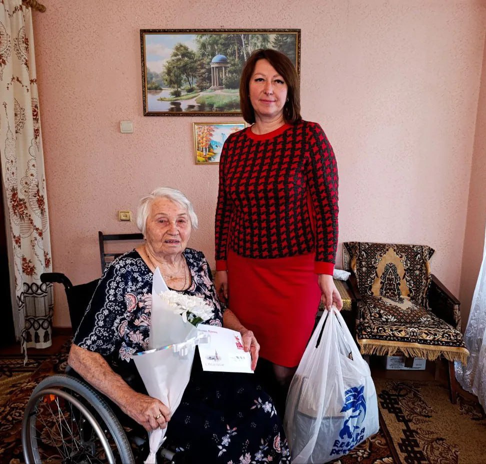 Поздравила юбиляра заместитель главы Администрации округа Елена Беседина — она передала открытку от Президента, подарок и тёплые слова от местной власти. Это знак того, что о старшем поколении помнят и заботятся.