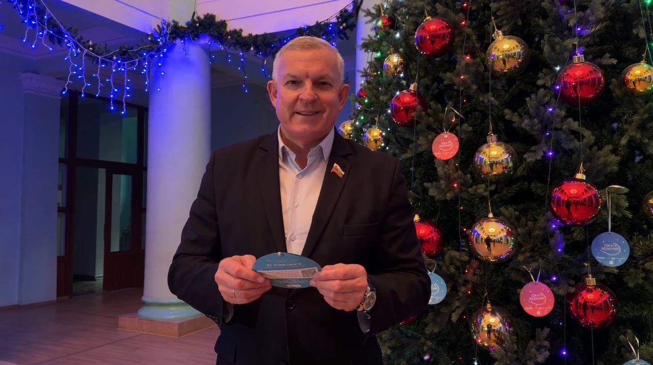 Совместно с Главой муниципального округа Сергеем Козенко, руководителями силовых структур, учреждений и организаций Краснодонского муниципального округа, Владимир Шавлай принял участие в ежегодной Всероссийской акции "Ёлка желаний". Снял шар маленького Ивана, которому всего 3 года.