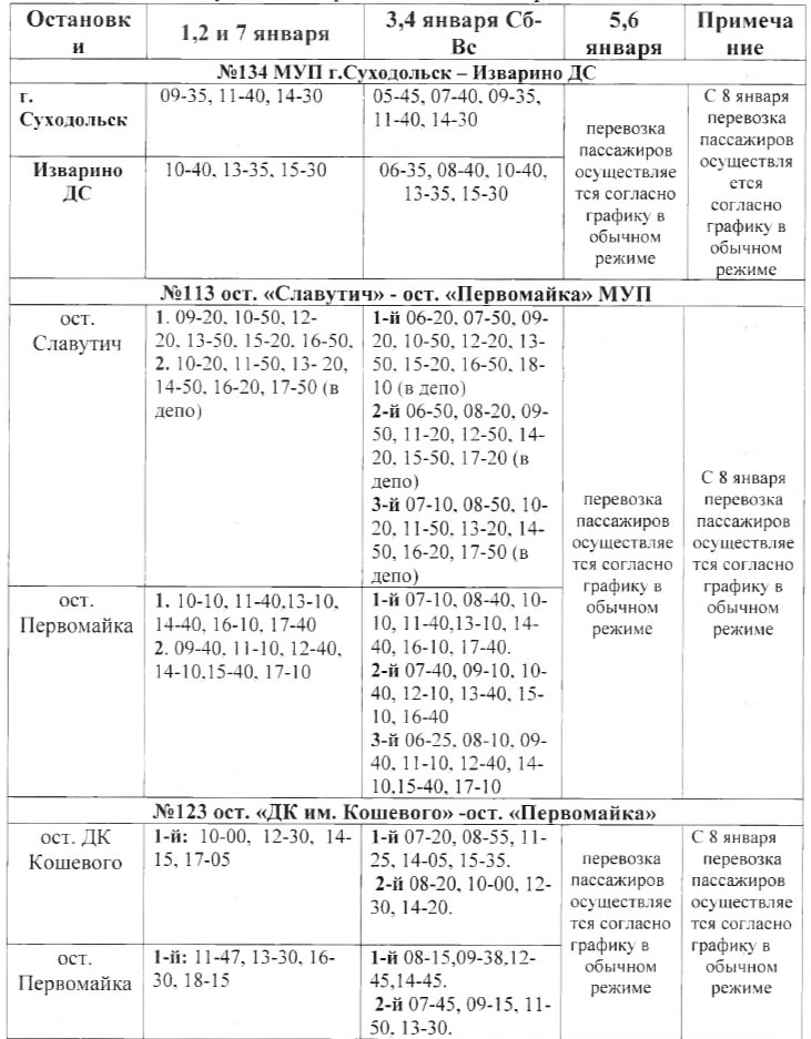 Отдел транспорта и связи Администрации Краснодонского муниципального округа информирует жителей и гостей округа о графике движения общественного транспорта на период с 1 по 7 января.
