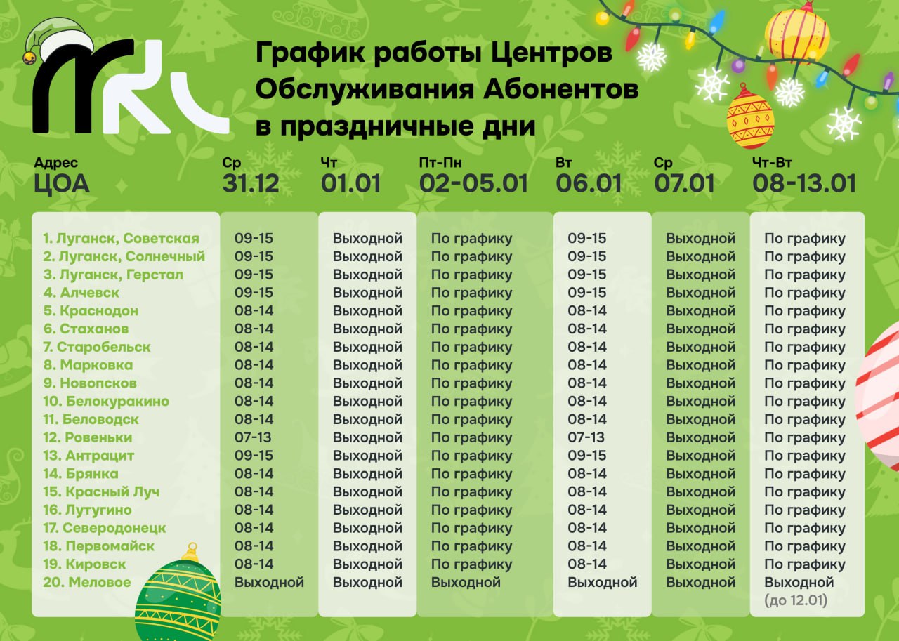 «Энергосбыт Луганск» поздравляет жителей Республики с наступающим Новым годом, Рождеством и сообщает о графике работы офисов в выходные и праздничные дни:• 30 декабря – офисы в г. Луганск с 8:00 до 18:00;•...