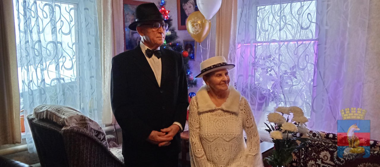 Администрация города Лисичанска в лице заместителя Главы города Антонины Поляковой, представитель местного Совета депутатов, а также начальник Лисичанского ЗАГСа поздравили юбиляров. Вручили им персональное поздравление от Администрации, а также подарки и теплые пожелания.