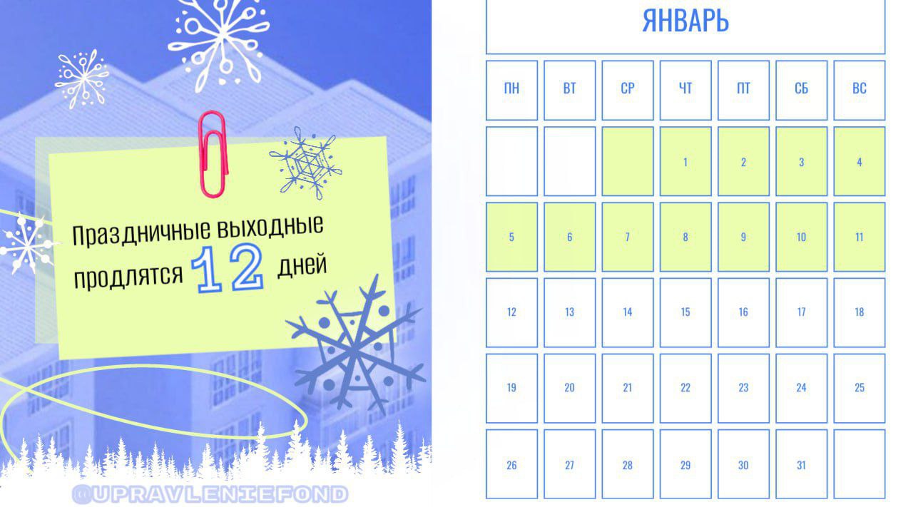 С 31 декабря 2025 года по 11 января 2026 года – выходные и праздничные дни.