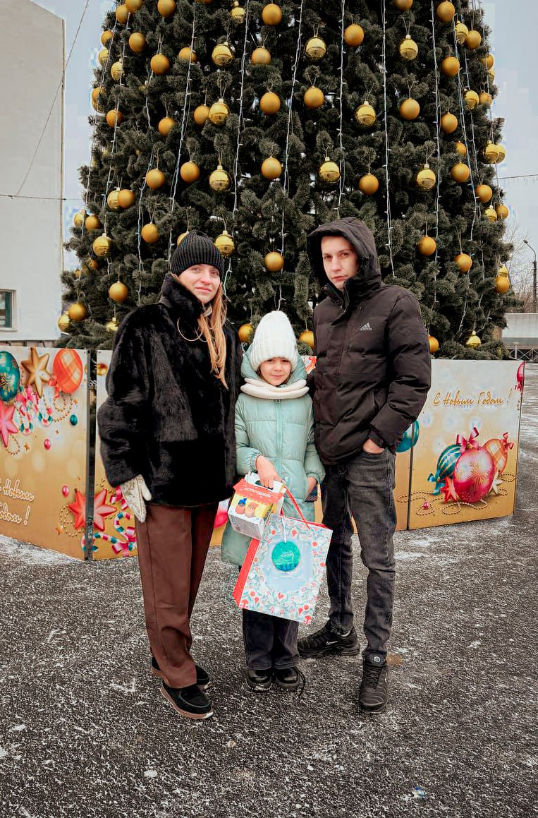 Андрей Анатольевич вручил подарки Елизавете и двум ее сестрам Евангелине и Екатерине из с. Морозовка Меловского района ЛНР, а Елена Александровна вручила подарки Дарье из г. Ровеньки ЛНР.