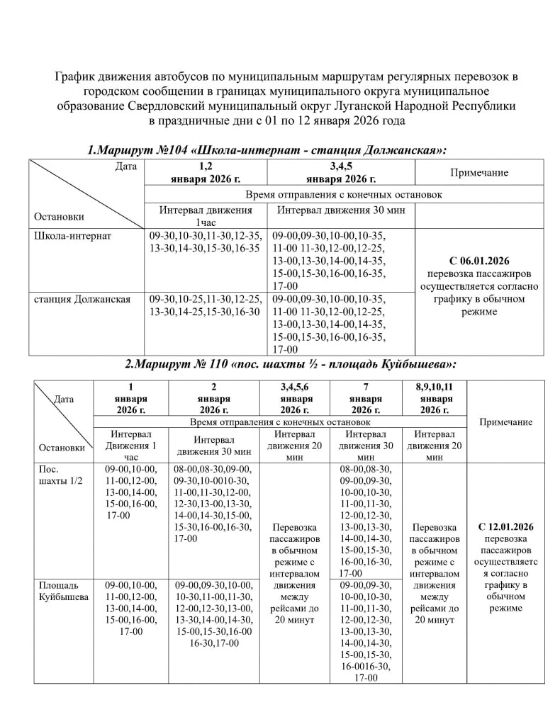 Предоставляем для ознакомления график работы общественного транспорта на муниципальных маршрутах регулярных перевозок в городском и пригородном сообщении в границах муниципального округа муниципальное образование Свердловский муниципальный округ Луганской Народной Республики в праздничные дни.