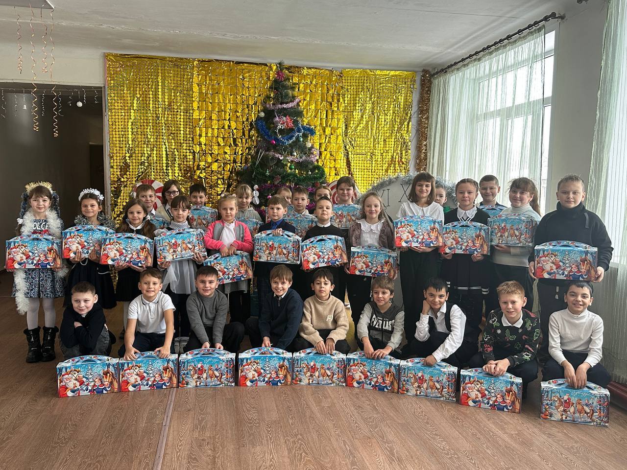 Эти приятные сюрпризы были вручены ребятам во время новогодних представлений, добавив радости и веселья в атмосферу праздника. Глаза детей сияли от счастья, а улыбки не сходили с их лиц, когда они получали яркие и увесистые коробочки со сладостями.