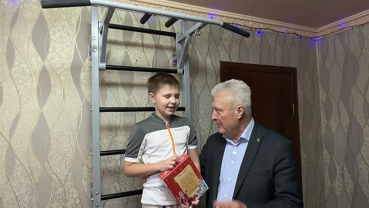 По просьбе Александра Викторовича передал подарок Артему. Совместно с мамой Артем был невероятно счастлив, увидев свой подарок. По его взгляду и желанию рассмотреть шведскую стенку было видно, что выбранный подарок пришелся по душе.