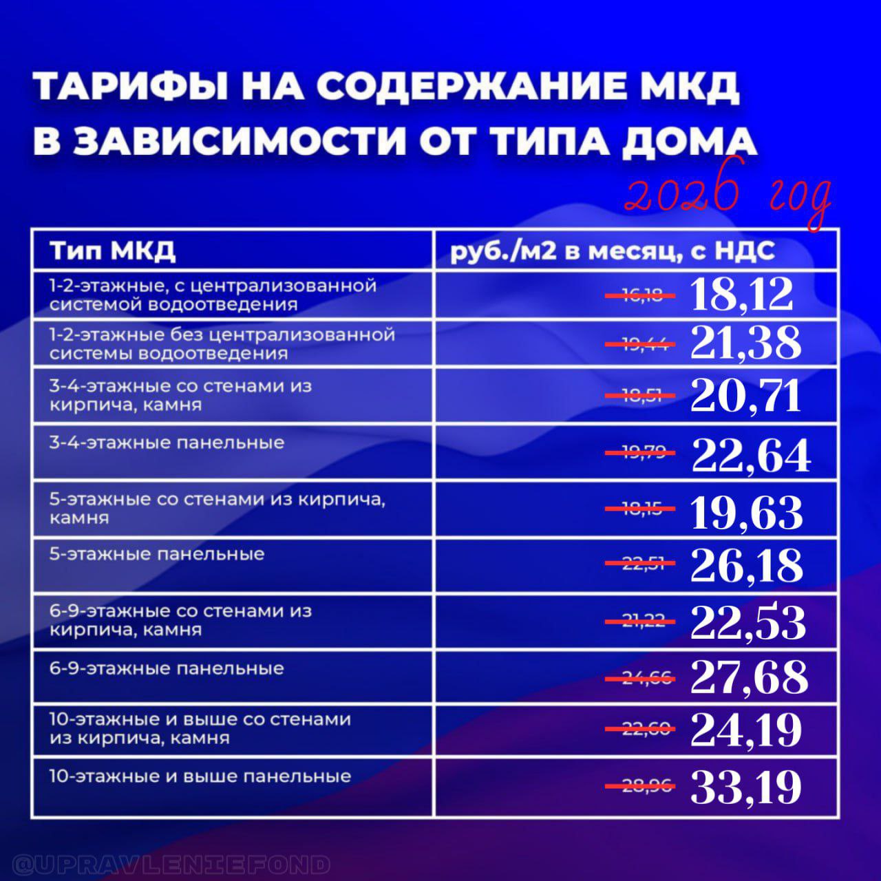 Ежемесячная плата за содержание помещения в МКД в 2026 году составляет от 18,12 до 33,19 за м