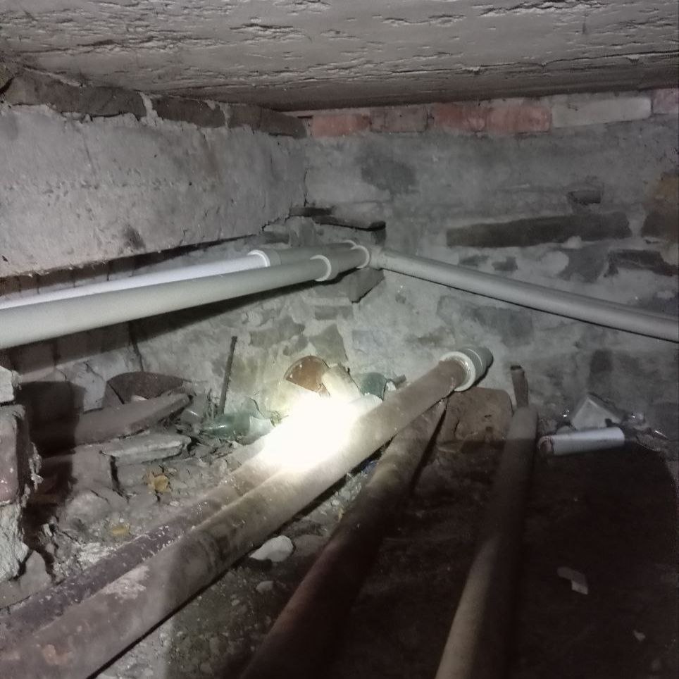 На фото выполнение работ по ремонту системы централизованного отопления по адресу улица Ленина дом 39 подъезд 2.
