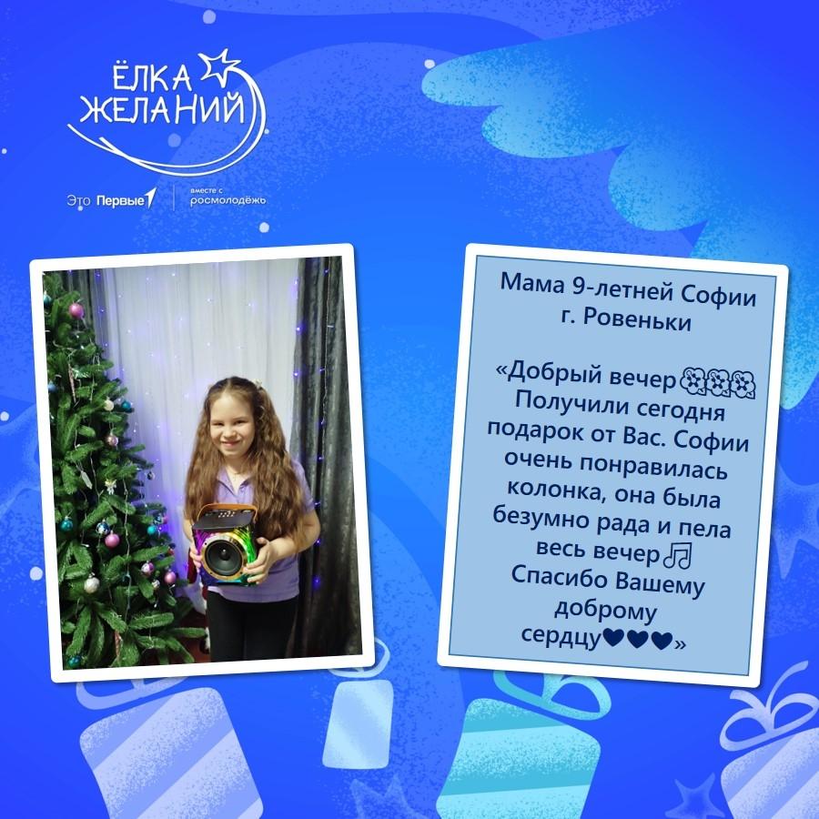 Заведующая отделом организационно-кадровой работы администрации Троицко-Печорского района Татьяна Порядина отправила подарок 9-летней Софии.
