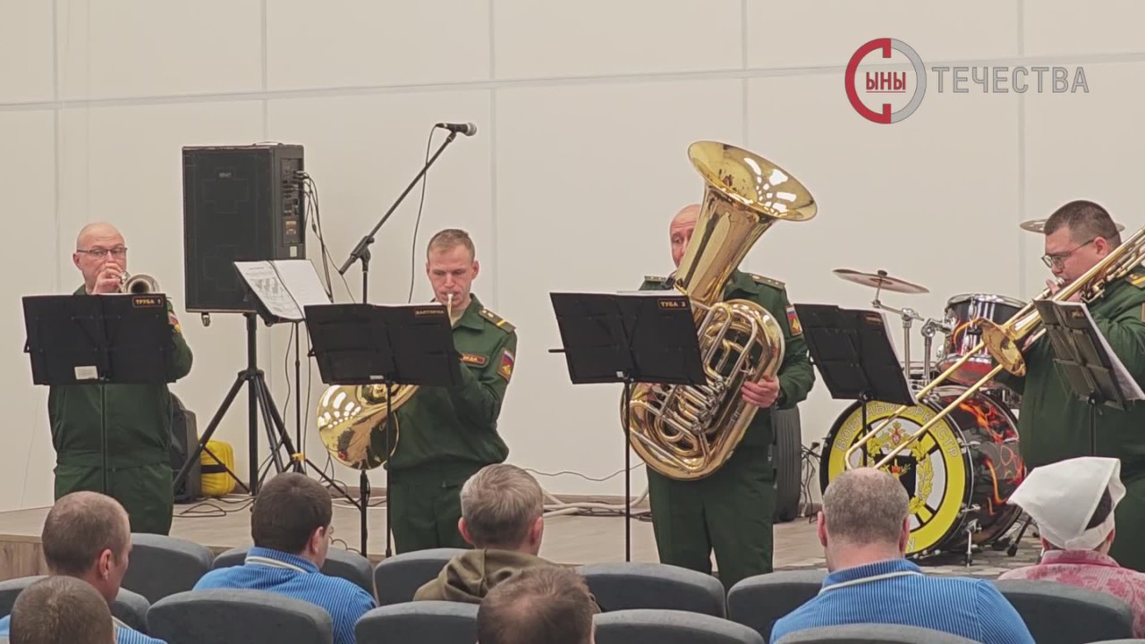 Под руководством старшего лейтенанта Валентина Злодиева музыканты исполнили целую программу: от бодрых советских маршей и классических произведений до народных мелодий и современных патриотических песен.