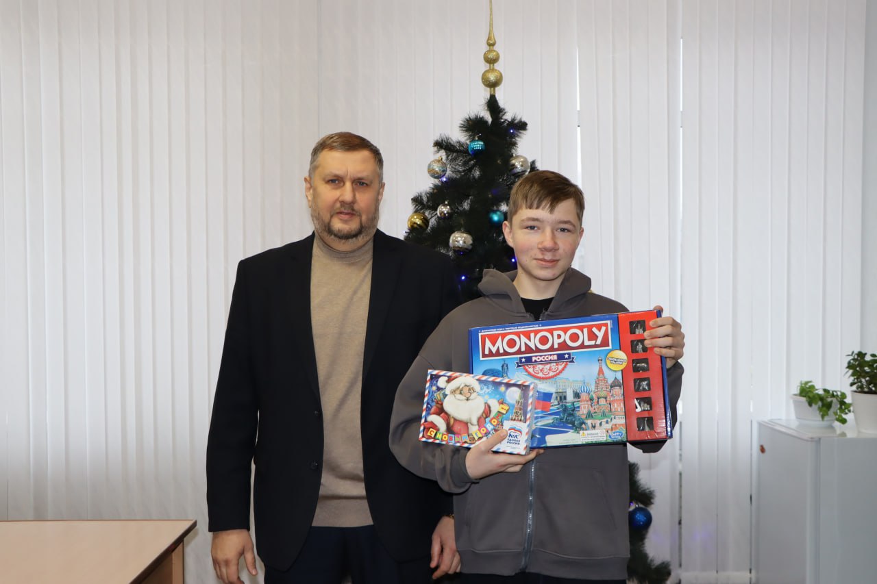 Никита, как и многие дети, верил в новогоднее чудо и мечтал о подаркесюрпризе. И сегодня я с особым удовольствием вручил ему настольную игру «Монополия» — именно то, о чём он мечтал. Глаза мальчика засияли от радости, а искренняя улыбка стала лучшей наградой за участие в этой доброй акции. Вместе с игрой Никита получил и сладкие угощения, которые добавили празднику ещё больше волшебства.