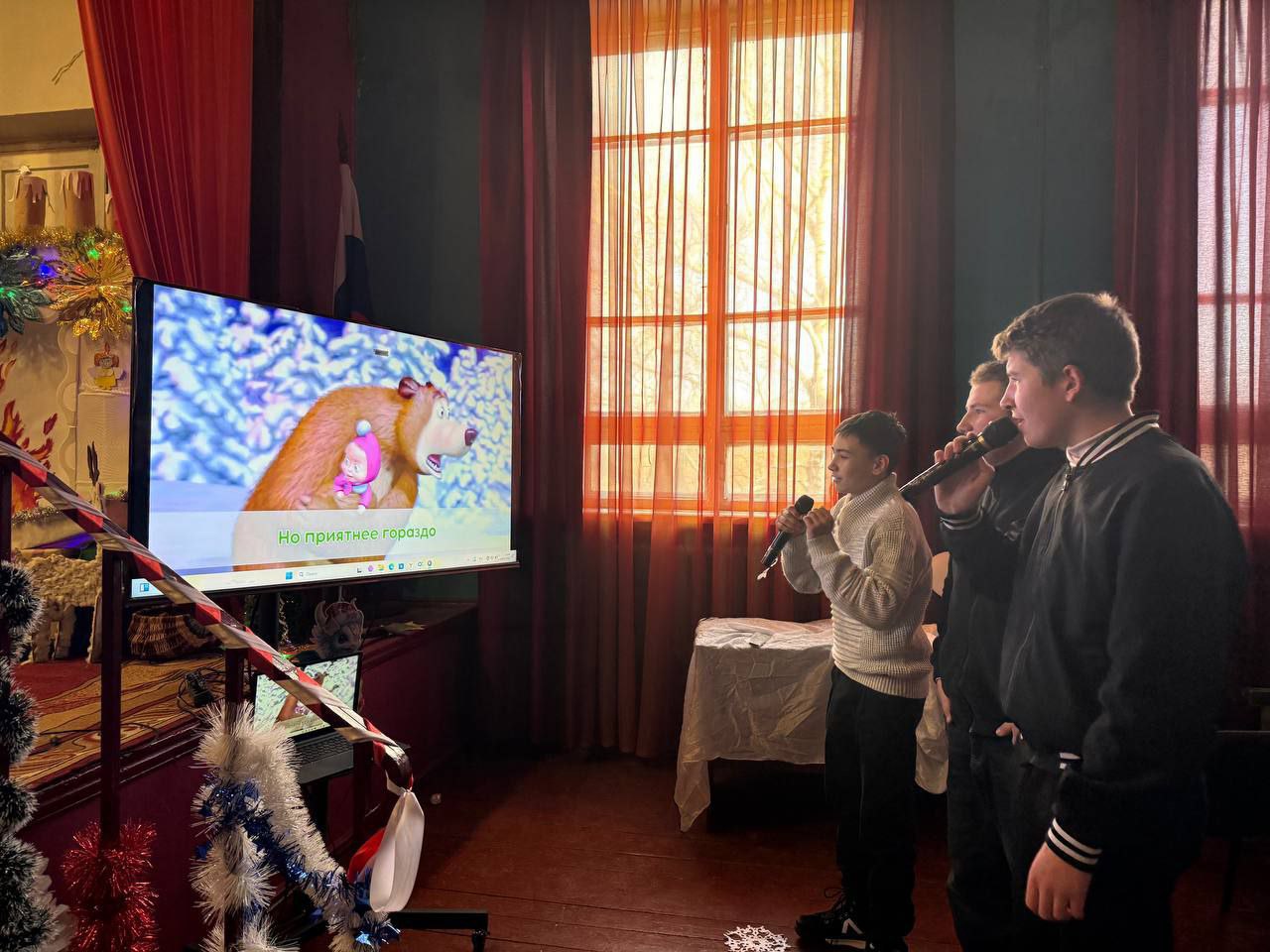 Ребята вспомнили о современных и старинных обычаях, обрядах и приметах в этот день. Праздник начался с шуточного гадания, проводились игры и, конечно же, новогодние Караоке. Веселая музыка, хорошее настроение дали всем ребятам заряд бодрости и энергии на целый год.