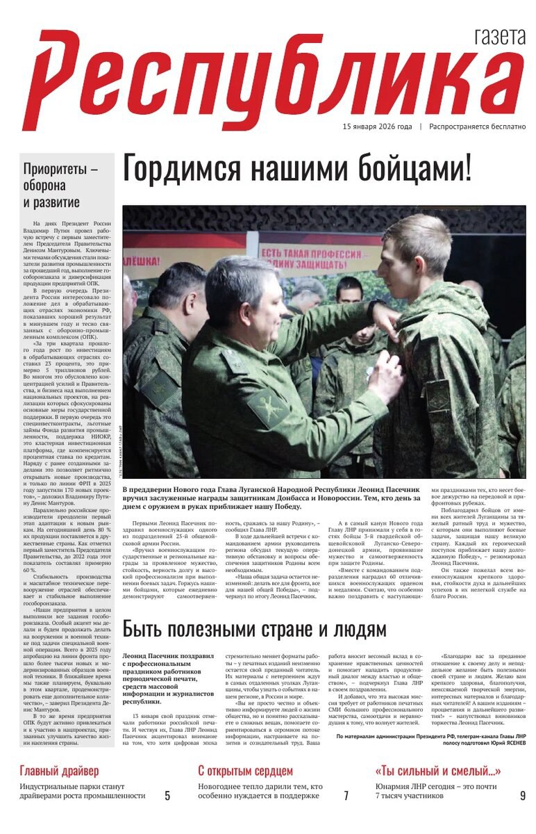 Газета Республика от 15.01.2026г