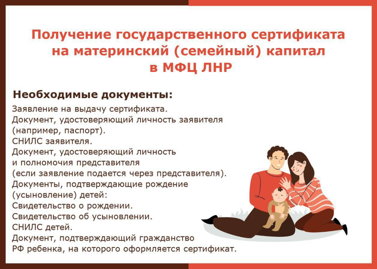 Отделения МФЦ ЛНР предоставляют услугу по выдаче государственного сертификата на материнский (семейный) капитал.