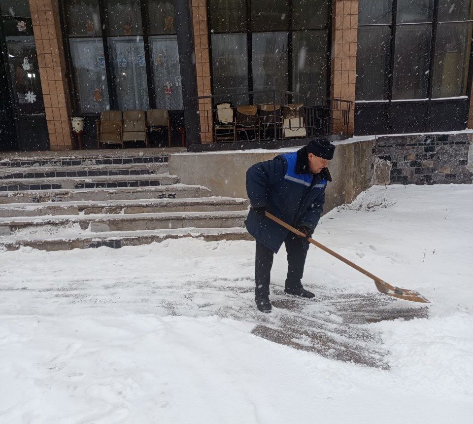 Работники учреждений физической культуры и спорта Алчевска проводят уборку снега