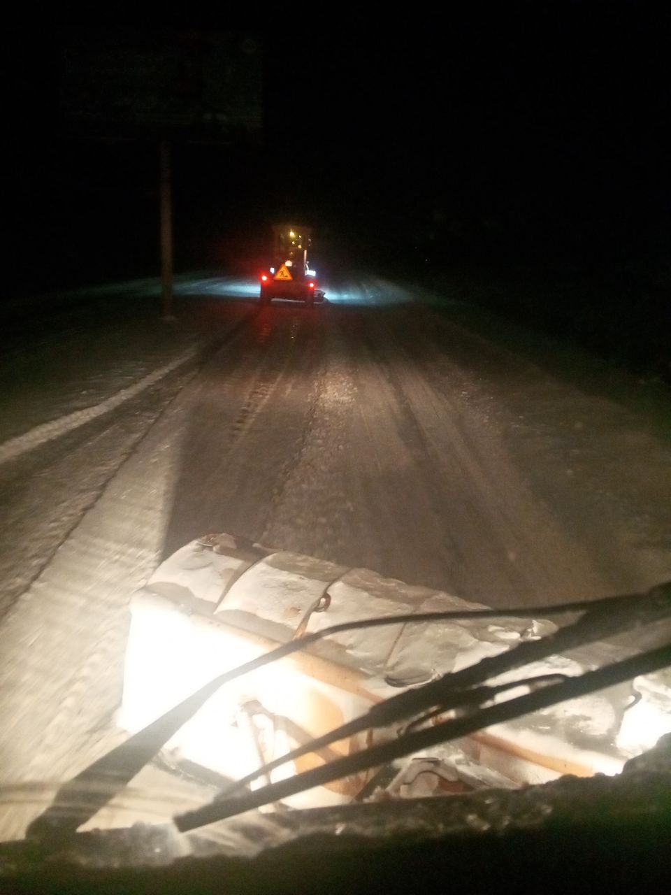 Сегодня с утра продолжается расчистка и обработка автомобильных дорог местного значения противогололедным материалом для предотвращения образования снежного наката.