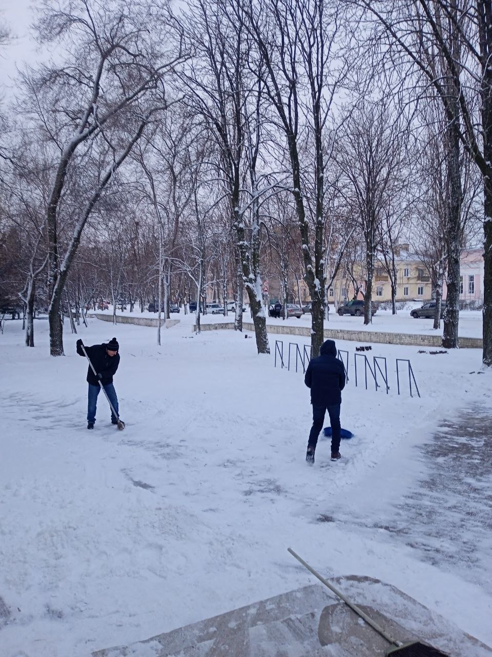 Работники учреждений физической культуры и спорта Стаханова проводят уборку снега