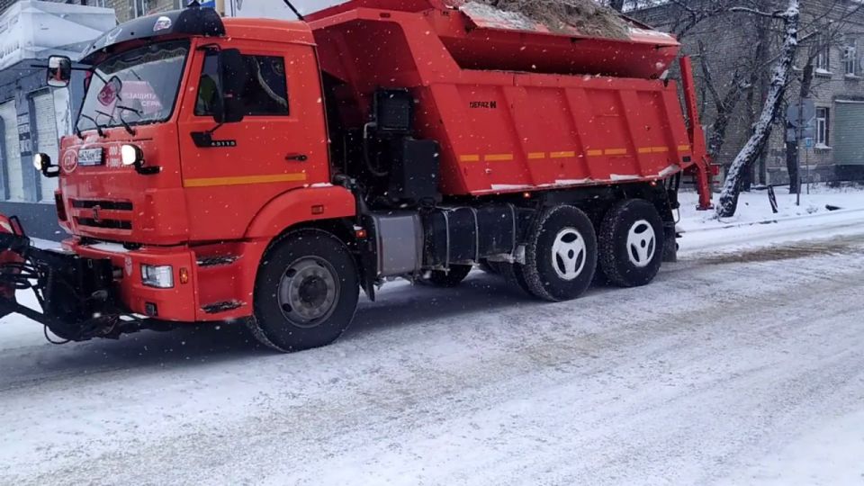 Первостепенно расчищаются центральные проспекты и улицы, перекрестки. Производят очистку с параллельной осыпкой противогололедной смесью четыре комбинированные дорожные машины.