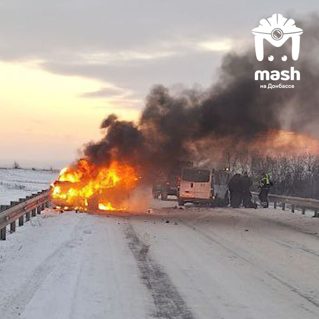 Микроавтобус столкнулся с легковым авто недалеко от КПП Должанская. Три человека пострадали, из них двое — в реанимации.