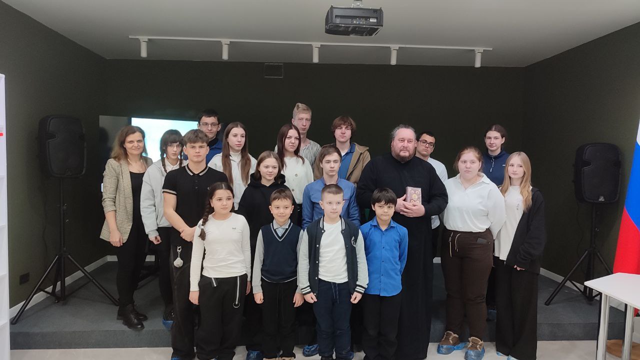 Протоирей Роман Колодка - настоятель Свято-Преображенского храма и благочинный Перевальского церковного округа, интересно поведал ребятам историю праздника, посвящённого событию из Евангелия — крещению Иисуса Христа в водах реки Иордан пророком Иоанном Предтечей.