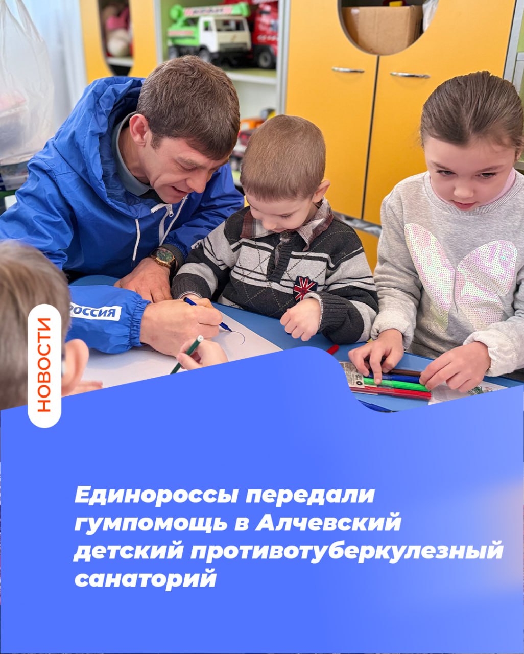 По поручению секретаря Алчевского местного отделения партии «Единая Россия» Светланы Гребеньковой активисты привезли гуманитарную помощь для пациентов детского противотуберкулезного санатория. Также представители активной молодежи города провели для детей мастер-класс по рисованию на зимнюю тематику.
