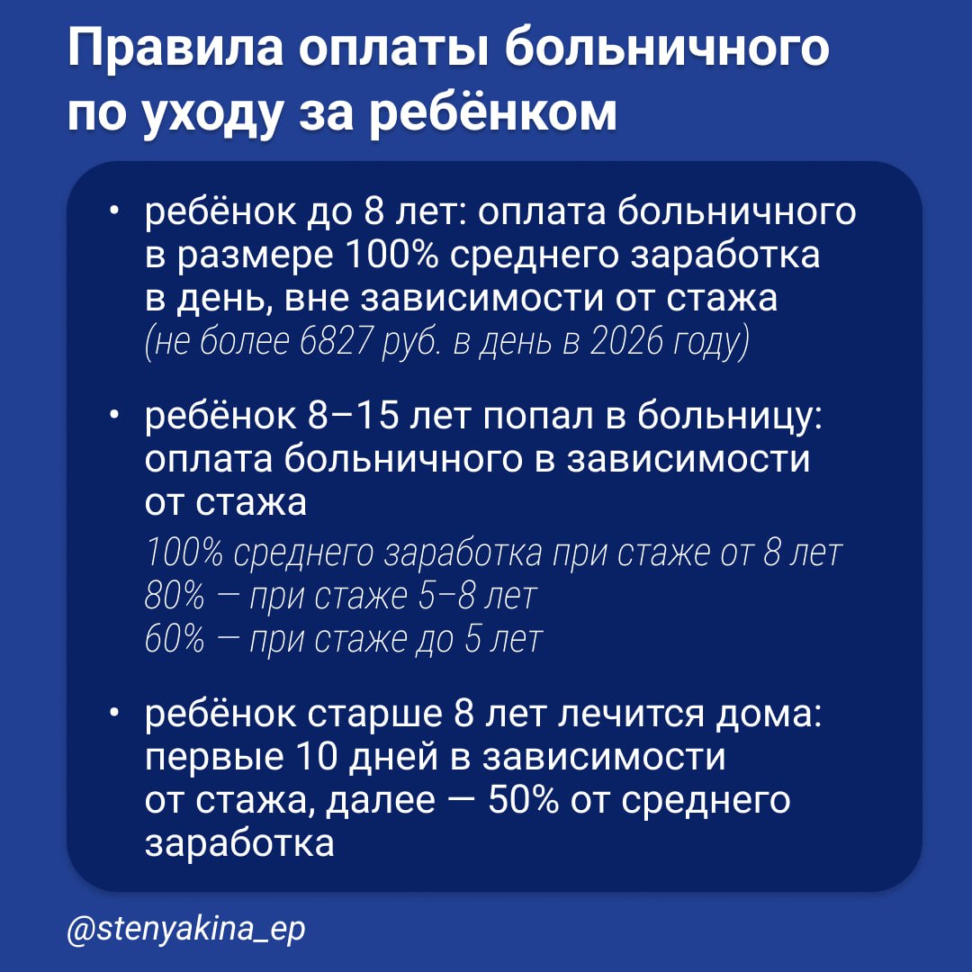 Сколько дней больничного по уходу за ребёнком оплачивается в течение года: