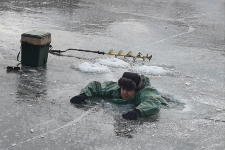 Раскиньте руки на кромках льда, не делайте резких движений.