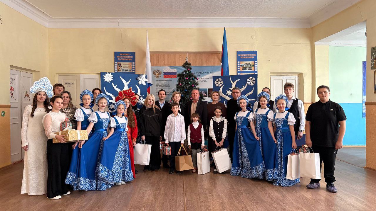 Цель их визита поздравить коллектив, учащихся и их родителей с прошедшими зимними праздниками.
