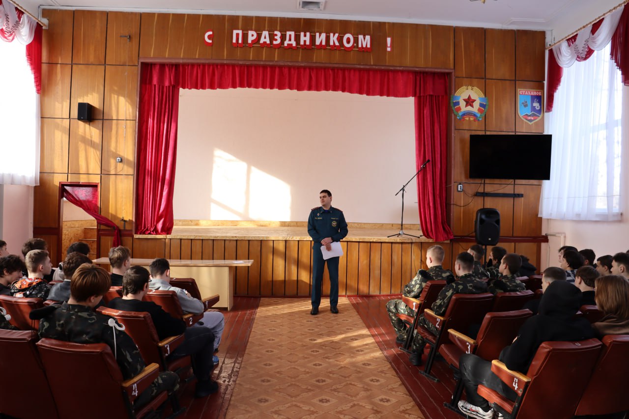 Сегодня в Стахановском колледже имени ГСТ К.Г. Петрова прошла важная встреча. Инспектор МЧС Денис Кашпур провел для студентов лекцию о безопасности.