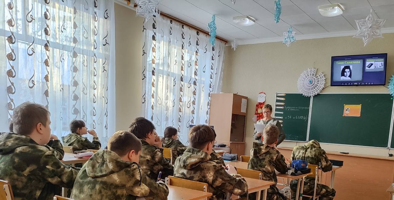 Школьникам рассказали о трагических страницах блокады Ленинграда и о судьбе Тани Савичевой, чей дневник стал одним из символов Великой Отечественной войны. Учащиеся посмотрели тематический видеоролик и презентацию, посвящённые этим событиям.