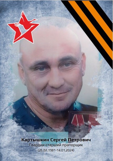 Картышкин Сергей Петрович 14 января 2024 года погиб при выполнении боевого задания в населенном пункте Белогоровка Северодонецкого района Луганской Народной Республики.