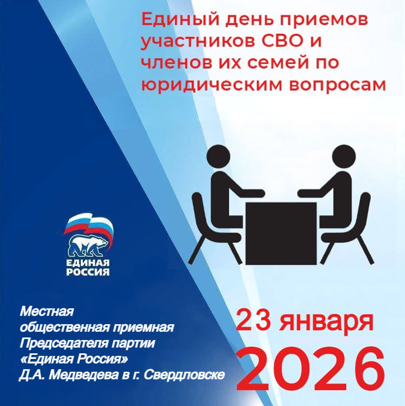 23 января в Свердловске пройдет Единый день приемов участников СВО и членов их семей по юридическим вопросам.