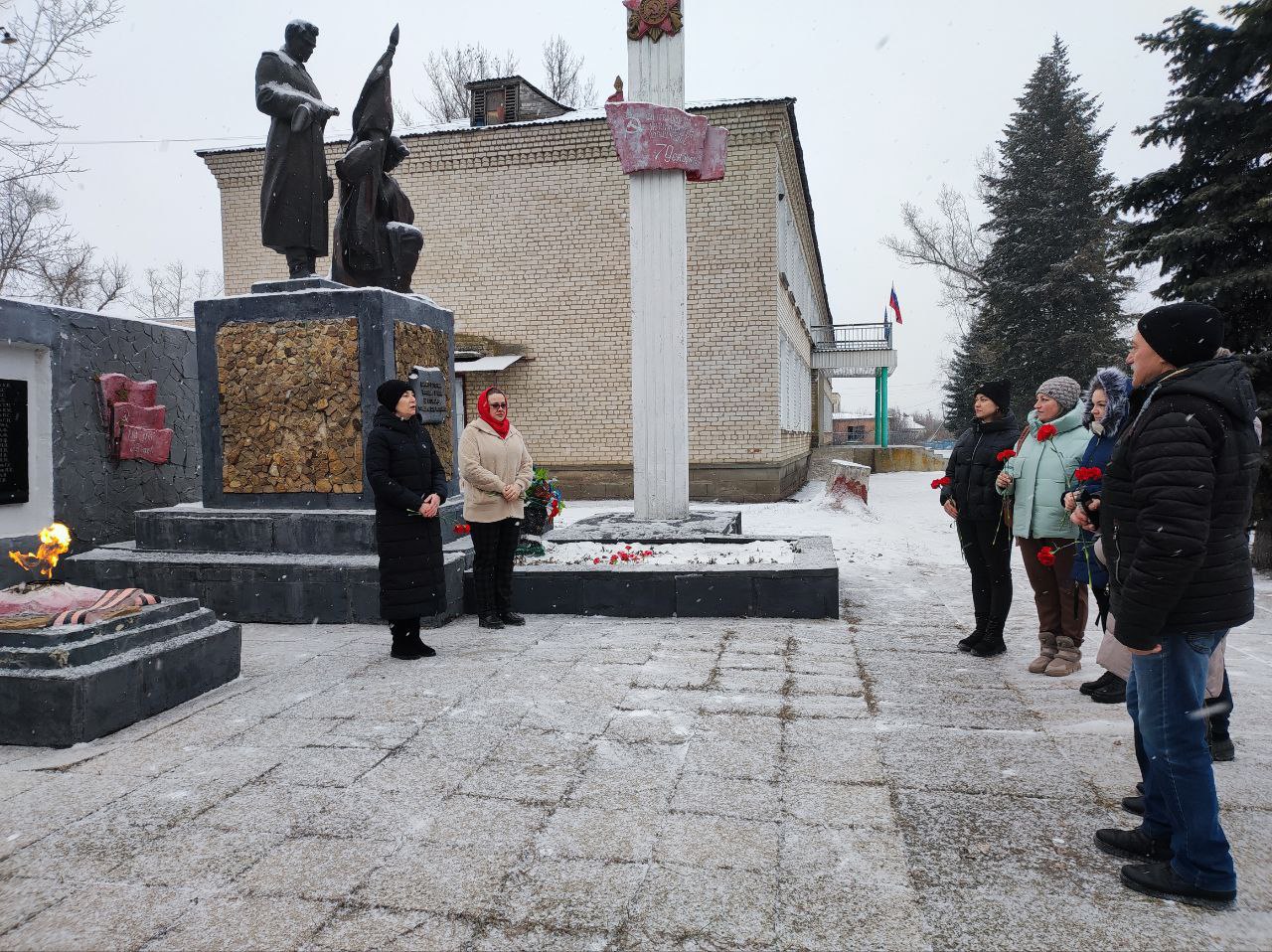 У памятника погибшим односельчанам и могилы Неизвестного солдата состоялся митинг, в котором приняли участие представители администрации, Дома культуры, библиотеки, а также неравнодушные местные жители. Собравшиеся почтили память павших героев и возложили цветы в знак благодарности за мирное небо над головой.