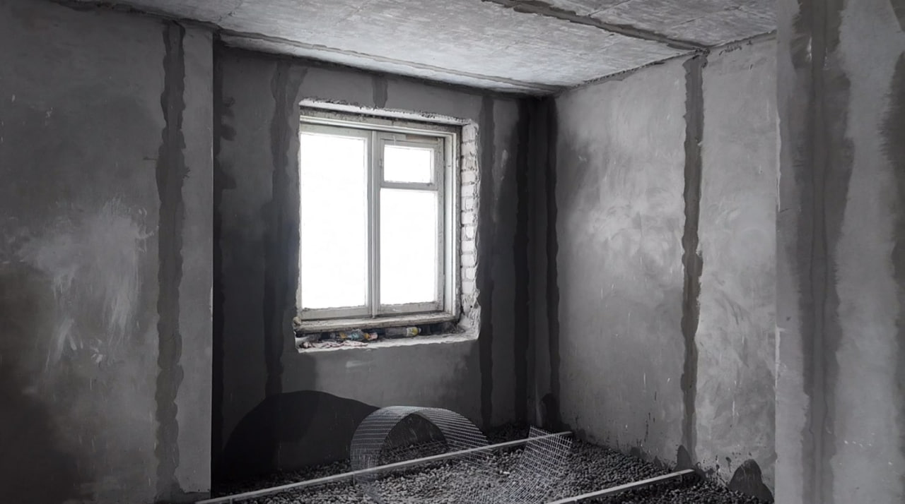 «Всё было… в плачевном состоянии. 10 лет помещение даже не отапливалось. Начали мы штукатурку снимать со стен, а перегородки все зашатались. Пришлось демонтировать и их. Всё выложили заново. В феврале мы уже закончим оштукатуривание, зальём пол, поменяем окна»