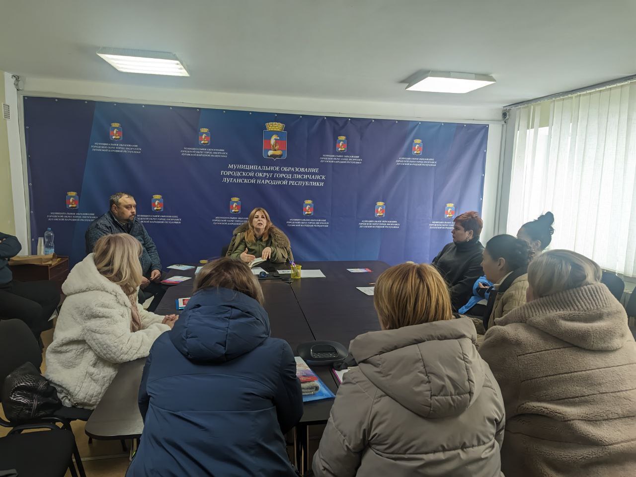 Член Общественной палаты ЛНР Виктория Тютюнникова, председатель совета РОО «Ассоциация юристов России в ЛНР» провела семинар-встречу с Главой городского округа Города Лисичанска ЛНР Эдуардом Сахненко и сотрудниками Администрации города.