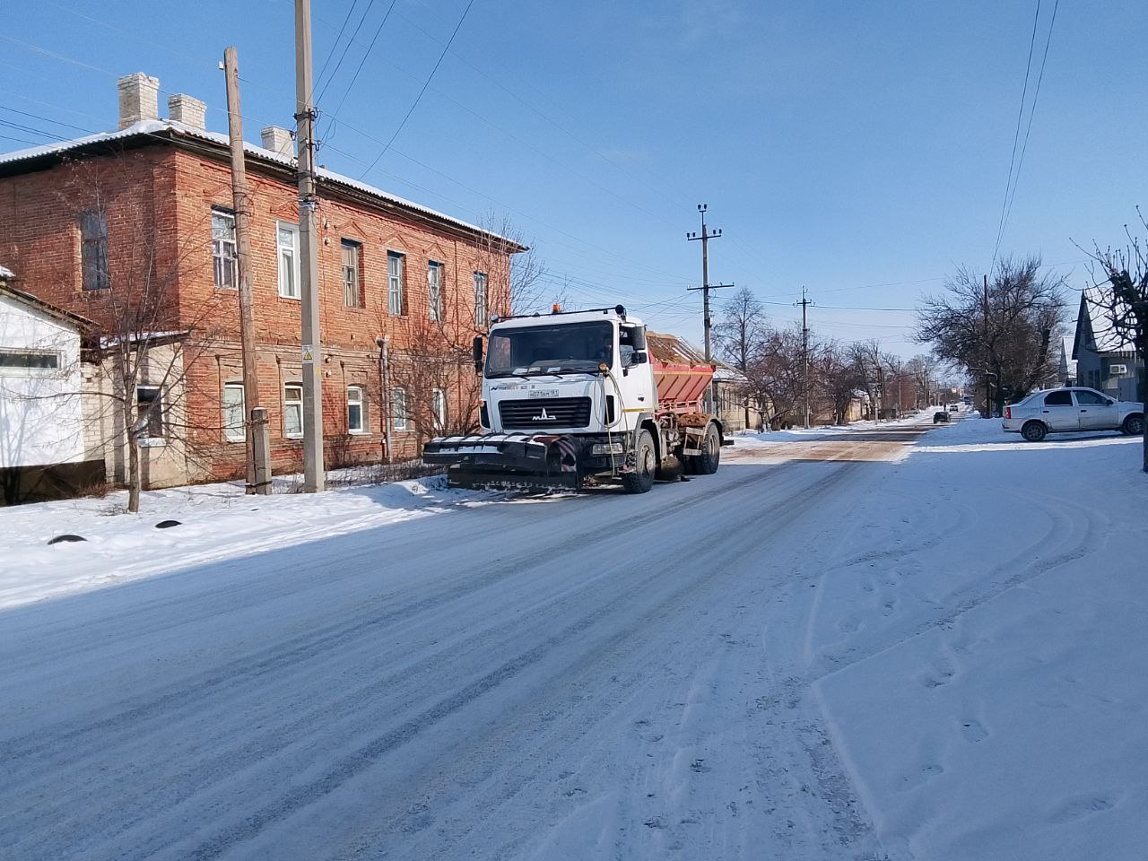 Коммунальные службы Старобельского муниципального округа проводят посыпку автомобильных дорог пескосоляной смесью в рамках обеспечения безопасного передвижения в зимний период.
