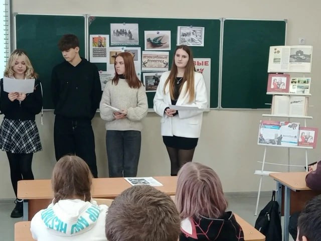 В ГБОУ ЛНР «Рубежанская СШ №2» для школьников 7 класса сотрудниками МБУК «Центральная библиотека города Рубежное» был проведен тематический час «Несломленный, непобеждённый…».
