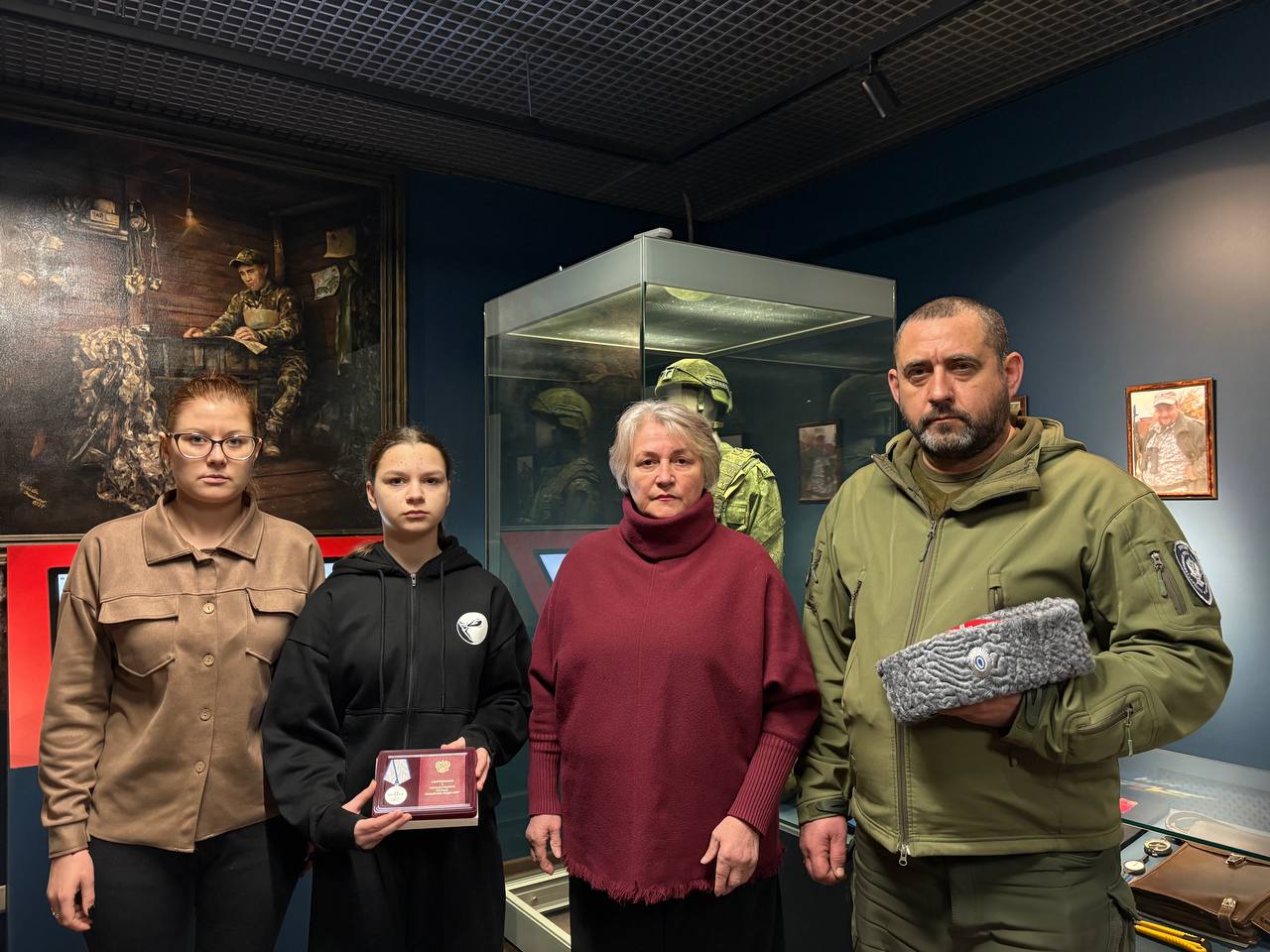 Сегодня начальник отдела чрезвычайных ситуаций, гражданской обороны, мобилизационной работы и взаимодействия с правоохранительными органами Администрации Станично-Луганского МО, начальник штаба казачьего общества Станицы Луганской Евгений Шпирко совместно с начальником отдела социального и пенсионного обеспечения военного комиссариата Станично-Луганского МО Екатериной Малоуховой вручили государственную награду семье Героя, который погиб, исполняя свой воинский долг.