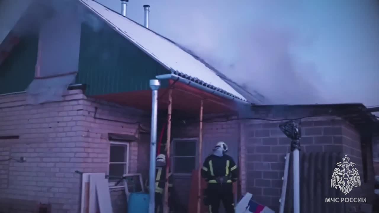 Спасатели МЧС России на пожаре в Рубежном спасли мужчину