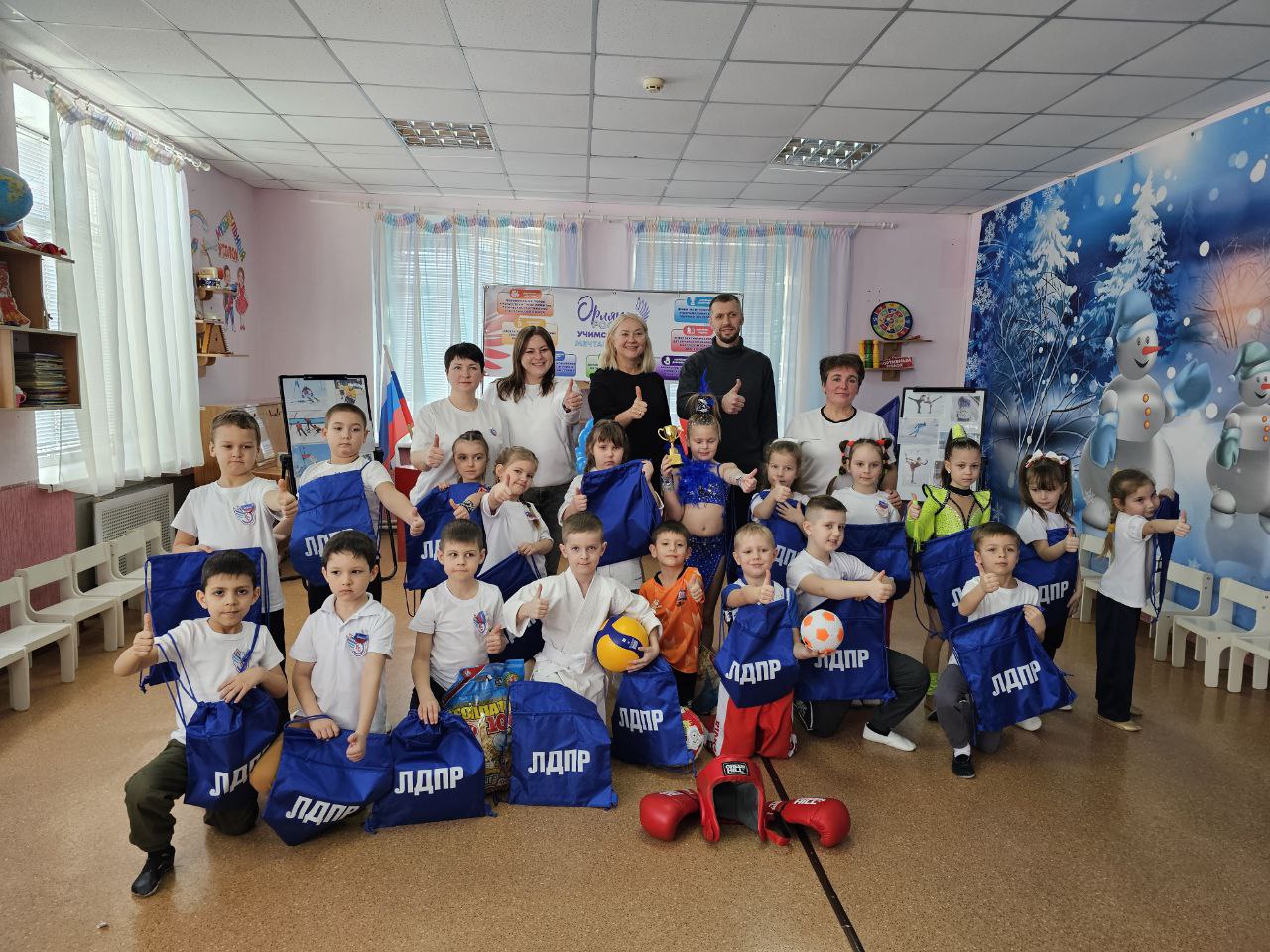 Каждый маленький чемпион получил от нас полезные подарки: спортивный инвентарь для новых рекордов и сумки-переноски с раскрасками.