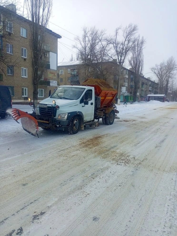 По Краснодонскому округу продолжаются работы по уборке снега и обработке дорог противогололедными материалами.