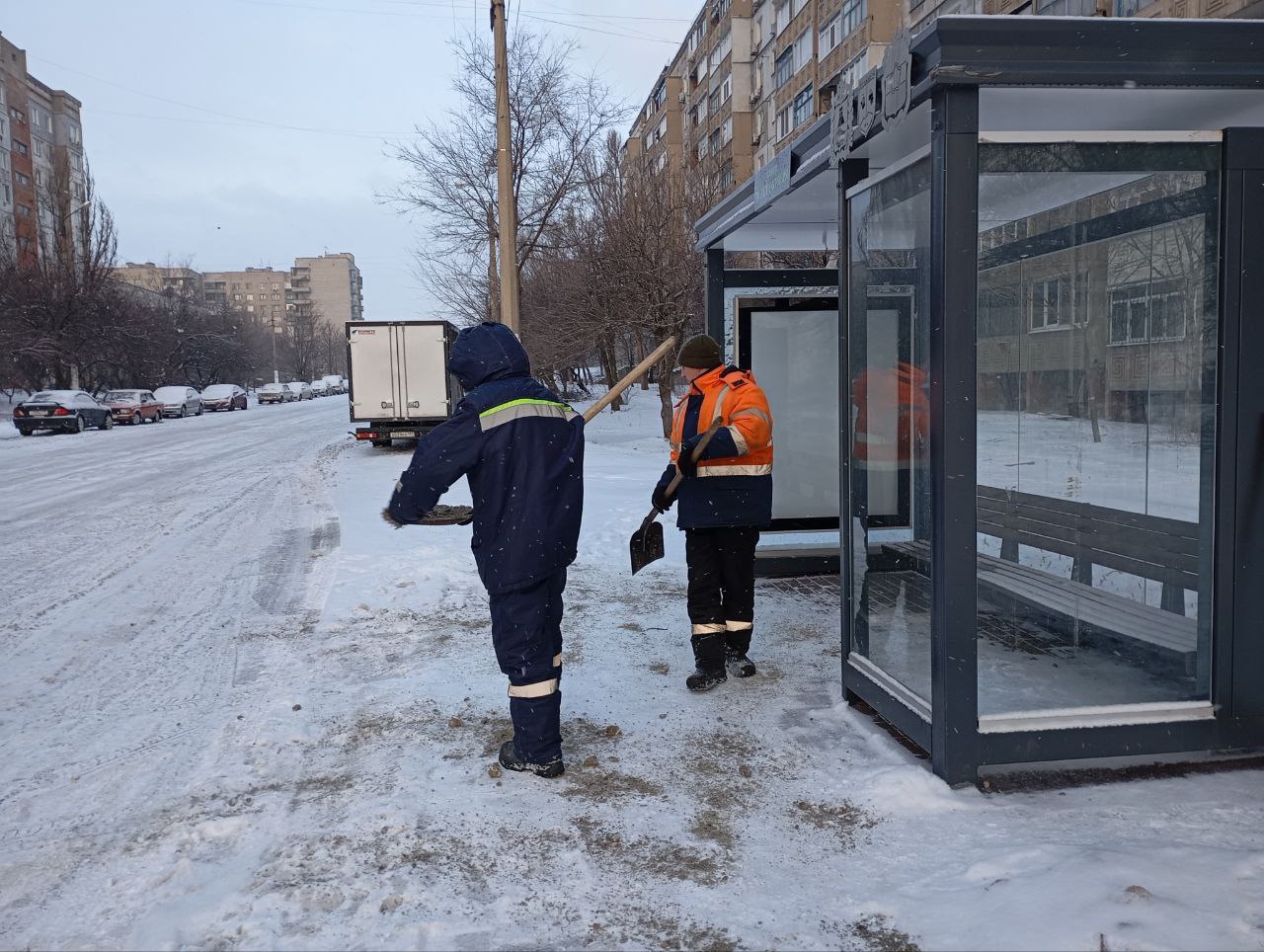 Проведена очистка от снега и наледи на пешеходных переходах, ступенях и остановках по городу.
