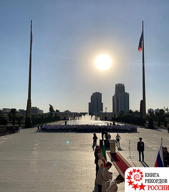 Подняты флаги России и Чеченской Республики размером 1015 метров.