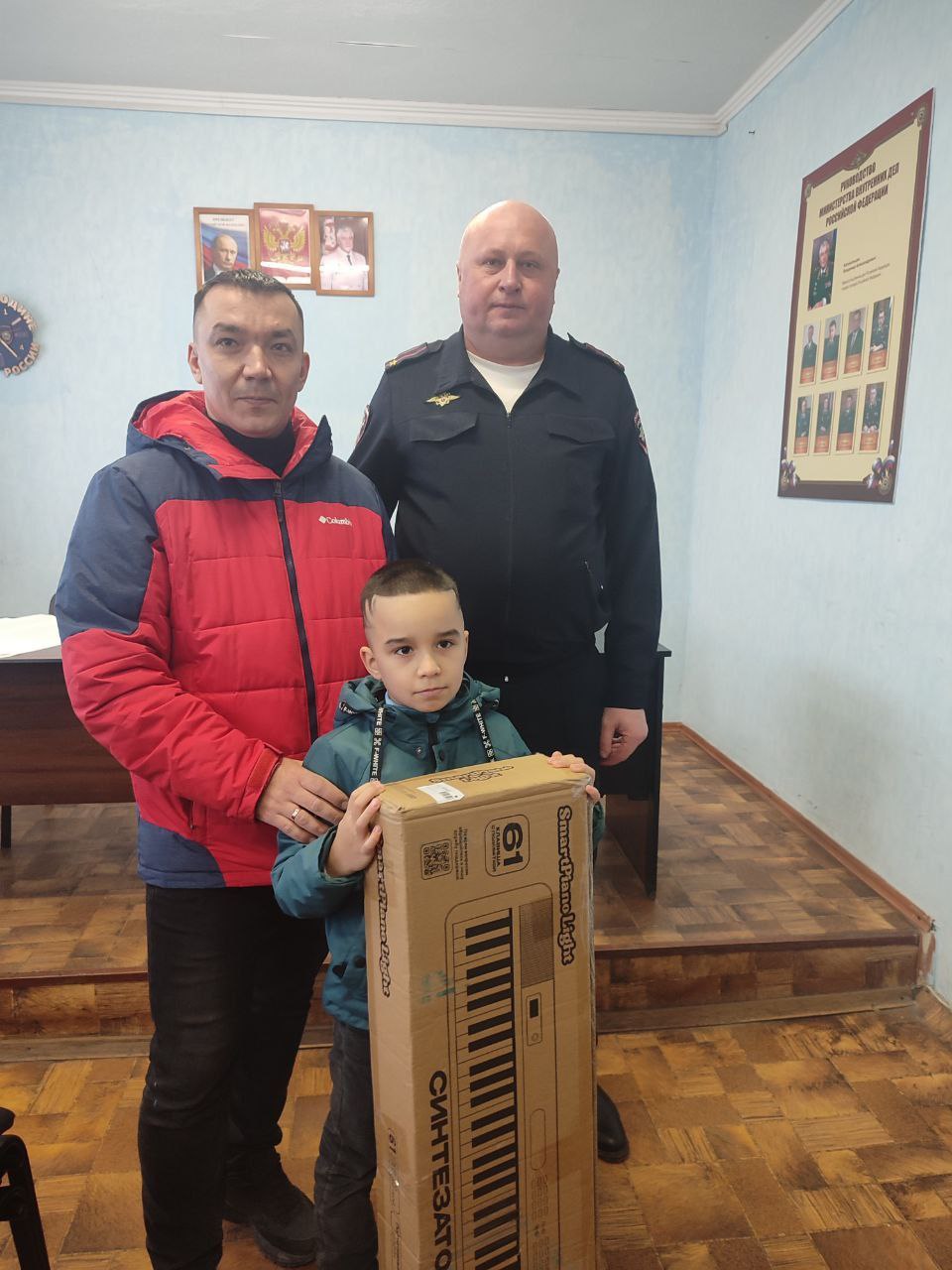 В рамках заключительного этапа Всероссийской акции "Елка желаний", начальник отдела ОМВД России «Беловодский» Николай Роговой осуществил мечту Егора из пгт. Беловодск, подарил мальчику синтезатор.