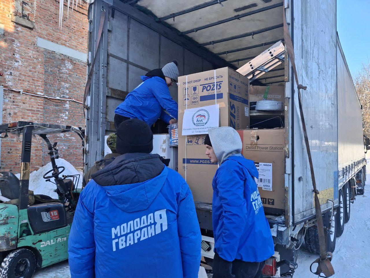 Татарстанское отделение партии «Единая Россия» отправило в подшефные города Лисичанск и Рубежное пять машин с гуманитарной помощью. В отправке колонны приняли участие Секретарь ТРО «Единой России», Председатель Госсовета РТ Фарид Мухаметшин и Герой России, генерал-полковник Александр Лапин. Общий вес груза составил 100 тонн.