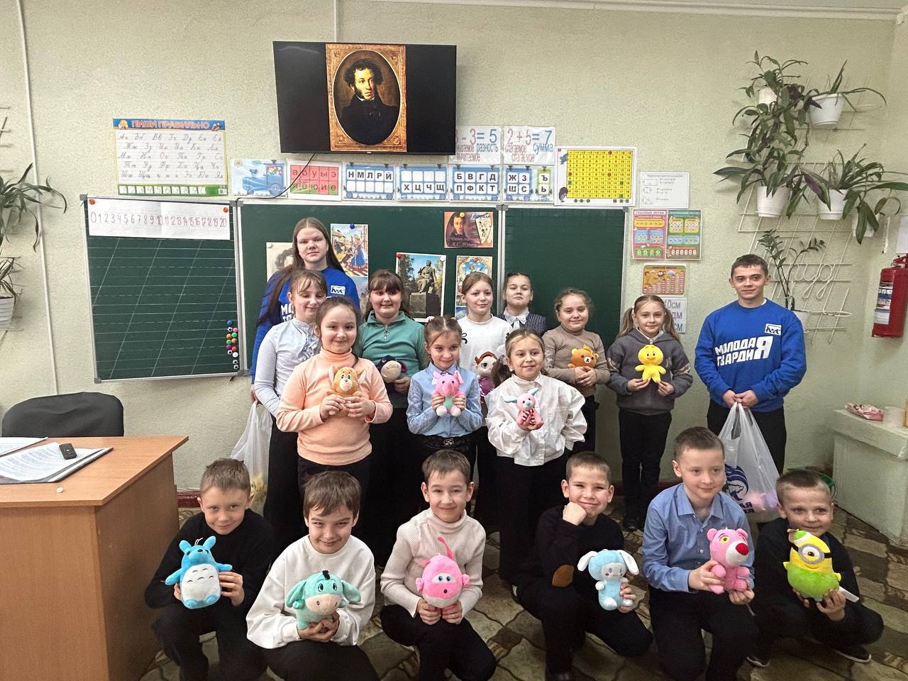 Активисты Молодой гвардии провели для ребят викторину по произведениям Александра Сергеевича Пушкина. Школьники вспоминали сюжеты знакомых сказок, отвечали на вопросы и узнали интересные факты о жизни поэта.