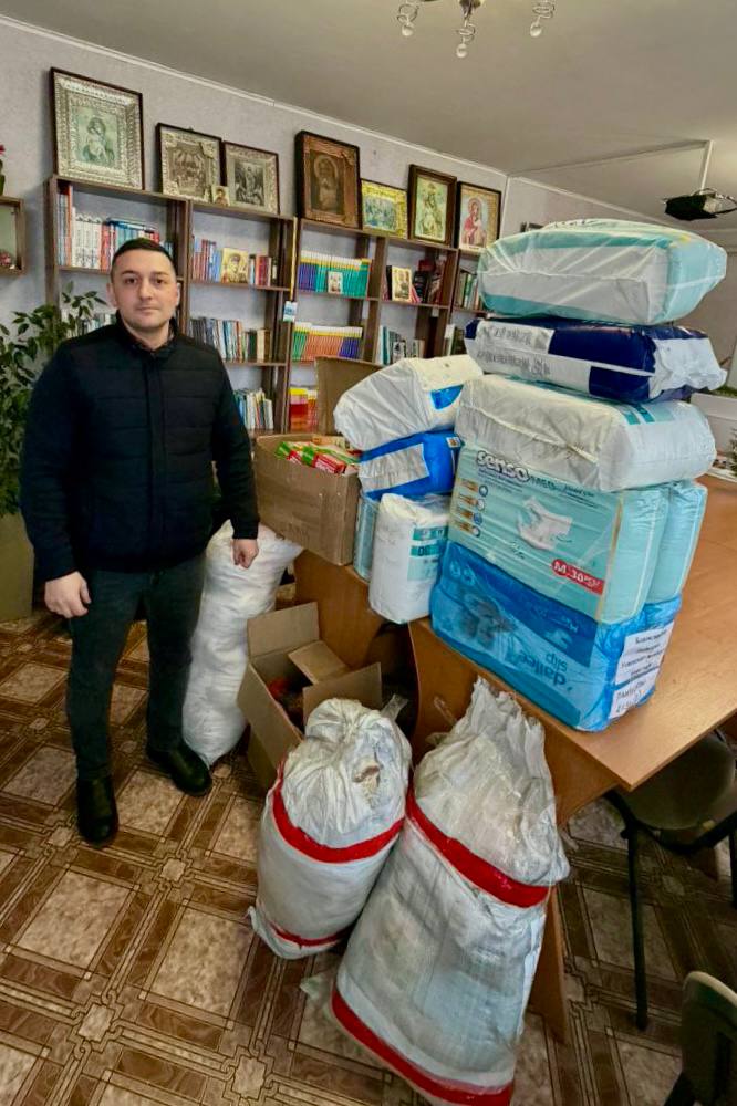Депутат Совета Новоайдарского муниципального округа от фракции ЛДПР Арсен Серджан совместно с военным подразделением «СКИФ» передали сестрам милосердия в Новоайдаре наборы средств личной гигиены.